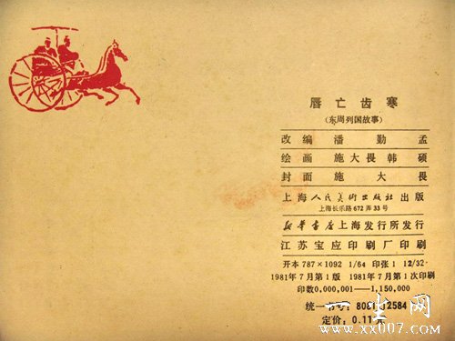 今天上午,记者在大河论坛看到,这本名为《唇亡齿寒》的连环画,发行于1981年7月,上海人民美术出版社出版发行,全册共分85个图文并茂画面,定价仅为0.11元。该帖文发出后,跟帖不断,好评如潮。