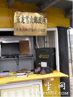 走出通道,左首处出现了我熟悉的邮箱,抬眼看去在这里居然还有一家“玉龙雪山邮政所”,邮编是674100,能在海拔如此高的地方看到邮政所不容易,这样的机会更加不能错过,我掏出在山下买来的部分邮资片,急忙请营业员销戳,两位营业员很是热情,还额外送我一枚有东巴文字的信封,我也不失时机地在上面留下了戳记。这时有不少旅游的朋友见我在盖戳,也有不少也纷纷前来咨询、办理。从戳上发现这里的海拔是4506米,难怪我有少许缺氧的生理反应。我担心通过实寄可能会出现遗失或破损的情况,就采取了两种措施,一是通过邮政所实寄,二是自己带回已经盖销过的封,片。谢过营业员的热情服务,与同行的朋友攀登雪山。