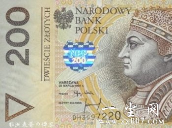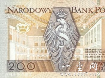 波兰的货币叫做兹罗提,钞票正面以波兰文印刷,现在1美元可以换2.86波兰兹罗提,1兹罗提约合2.38人民币。这张200兹罗提等于476人民币。
