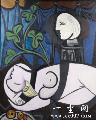 毕加索油画《裸体、绿叶和半身像》(Nu au Plateau de Sculpteur)。