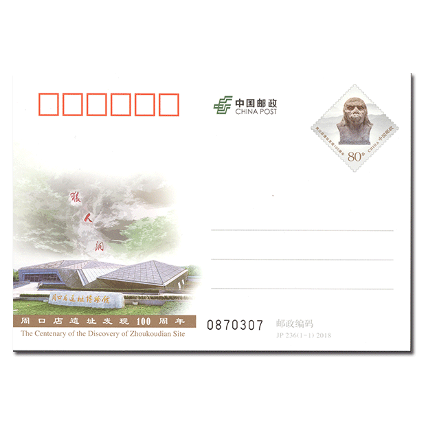 6月9日发行《周口店遗址发现100周年》纪念邮资明信片1套1枚