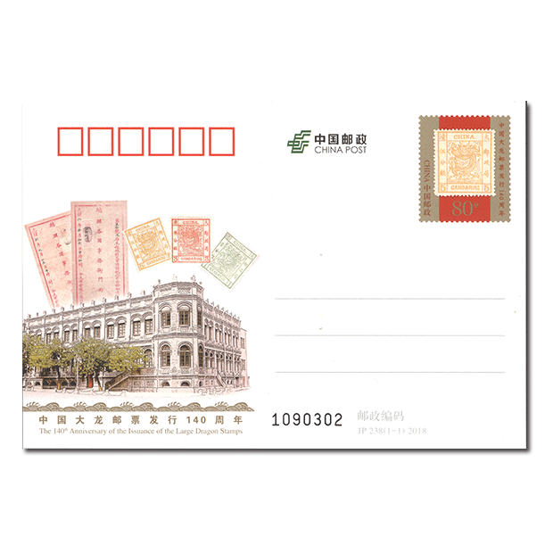 7月24日发行JP238《中国大龙邮票发行140周年》纪念邮资明信片1套1枚
