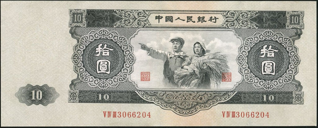 大黑十纸币在第二套人民币中最具有价值。发行于1955年,当时我国国内生产能力和印刷技术水平的落后,大黑十纸币并非我国独立发行,而是在苏联政府的帮助下印制发行的,它面值十元以黑色作为底色,正面为典型的工农形象,寓意着工农联盟,左侧有国徽作为防伪标志,四边有宽的白边,再加上它有着210mmX85mm的尺寸,在现有已发行的人民币中属于尺寸最大的纸币,故被称之为“大黑十纸币”。