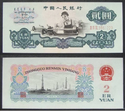 1960年车工2元纸币非常有特色,设计师设计了两个版,实心五角星的水印还有是空心五角星和古币混合的水印。采取这样制作方式的水印也就是,可以使得让这套人民币的收藏价值在收藏市场上稳居高地,设计成空心五角星和古币混合水印的1960年车工2元纸币,从数量来说是比较少一点的,所以它的价格比前面的一种肯定要稍微高一点。2009年的时候,这两种纸币的价格,就分别达到了700多块钱的价格,贵一点的则是800多块钱的价格。到现在的话肯定他们的价格都上千了。