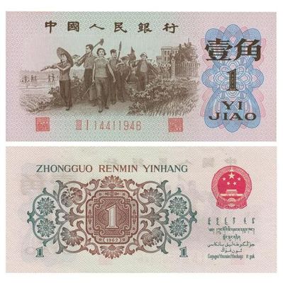人民币是中华人民共和国的法定货币,本文主要向大家简述一下已经发行的第三 版背绿水印壹角人民币以及对它的收藏价值的简要分析。第三版发行的时间是一九六二年的中旬,他的流通时间现在也被终止了,使用日期有40多年。与第一套人民币相比,这套人民币上增加了两种语言,分别是:韩文,壮文。至此,人民币共用六种语言写着中国人民银行。除此之外,也取消了叁元面值,增加了壹角、贰角、伍角和壹元四种金属币。