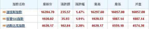 周三美国股市收高,中美利好经济数据数据提振了市场情绪。道指上涨1.47%,报16,284.70点;标普上涨1.91%,报1,920.02点;纳指上涨2.28%,报4,620.16点。第三季度美股表现不佳,为4年来最差的一个季度,三大股指跌幅均超过7%。