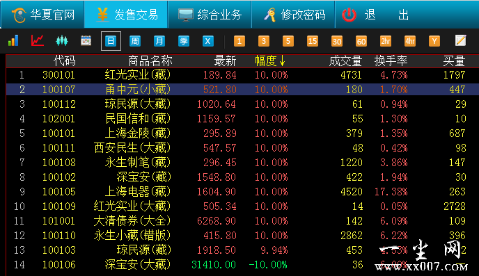 上图为2015年11月17日华夏文交所【股藏板块】收盘截图