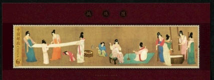 1,乃艺术珍品,该邮票运用了多种技术,将唐代妇女在捣练、理线、熨平和缝制劳动操作时的情景描绘的出神入化,足以见得唐代的捣练技术。