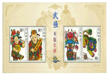 武强木版年画是因其产地在河北武强县而得名。它与天津杨柳青、江苏桃花坞、山东杨家埠、四川绵竹年画齐名,是中国的五大年画之一。武强木版年画距今已有500多年的历史,它不同于其他的年画,它以杜木刻版、以阳刻为主,兼施阴刻,线条稳健、流畅、简洁有力,以重笔情刀趣著称,而不以工细见长。今天就为大家介绍一款关于武强木版年画兑奖小版的邮票。
