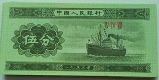 第一套人民币是我国新中国成立的时候发行的,那时候制作工艺还不是特别精湛,甚至可以说是特别差,不仅没有水印,还容易坏,稍经摩擦就会有破损。也正是如此,第一套人民的存世量少之又少,所以才会有现如今的收藏价值,可以说很多人都羡慕拥有第一套人民币的收藏者。但是羡慕归羡慕,就目前的走势来看,虽然有一些人民币虽然比较冷门,但是却还是有着不错的投资前景的。但是1953年5分纸币的流通时间有几十年,所以存世量不算低,因此升值空间并没有第一套人民币那样大,但是正版的五分钱纸币还是值得收藏的,在此提醒广大收藏者,不要盲目的购买五分钱,一定要辨别好是否是正版的。