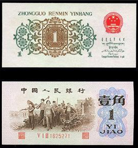 为挽救“红一角”的“政治错误”,1966年10月1日,因背面的墨绿色菊花图案而得名的“1角背绿券”临危受命,进入流通,人物改为“向左走”,从而取代了“右倾”的“红一角”。不过好景不长,“1角背绿券”在1966年10月1日正式发行,但却在1967年12月被匆匆回收。之所以如此“命短”,也是因为一个致命的失误,那就是“背绿券”与1964年发行的2角纸钞背面颜色极为相似,容易在交易过程中混淆。当时,很多人甚至故意将“1角背绿”作为2角钱使用,引起了金融秩序的极大混乱。于是,“背绿券”仅流通14个月,即被央行召回,成为人民币历史上流通时间最短的纸币。