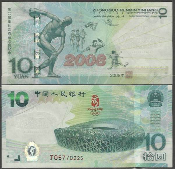 这张奥运人民币纪念钞的正面图案是北京奥林匹克运动会主会场——国家体育场,而它的上方是第29届奥林匹克运动会会徽图案,背景为天坛图案;纪念钞的背面图案是古希腊雕塑“掷铁饼者”、运动员群像图案及“2008”字样,主景图案下方还有年号为“2008”以及我么行长的印章。近年来,奥运钞也是作为一款非常炙手可热的品种,短短纪念,已经升值非常高,这张纪念钞在当年一上市就遭到全国各地的疯狂抢购,把同期的其他奥运纪念品远远地抛在脑后。如今,这张奥运纪念钞的价格已经升值了几十倍,价格维持在4000元左右!