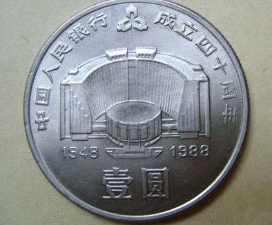 1、人行成立四十周年:唯一一枚既有国名又有行名的普通纪念币。被称为普通纪念币币王。一枚品相全品现在市价近六千!