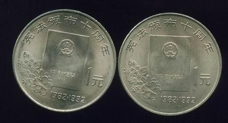 宪法十周年:正反币面都有国徽的普通纪念币。