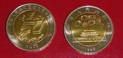 建国五十周年、港澳自治区成立:仅有的三枚币的正反面都有“中华人民共和国”字样当地普通纪念币。