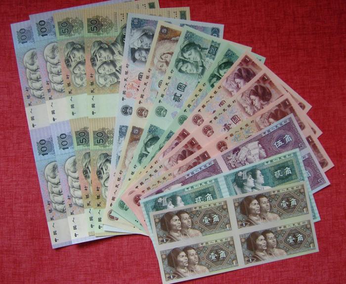 第四套人民币连体钞是中国人民银行在2002年发行的以第四套人民币中的纸币组成的连体钞。第四套人民币连体钞主要包括第四套人民币中的1角、2角、5角、1元、2元、5元、10元、50元、100元这九种面值的纸币,而且是九种面值的四连体钞,它的总面值是675.20元,当时一共发行了二十五万册。第四套人民币连体钞的发行是作为纪念钞的形式存在,但又不同于纪念钞,它是在第四套人民币即将退出流通的时候发行的,也算是纪念第四套人民币在经济生活中的重要作用。