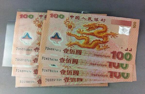 2000年发行的千禧龙钞,面值为100元,分单张龙钞和两张连体的双龙钞两种。