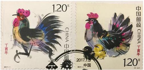 二、《丁酉年》生肖邮票将“国”和“家”的概念作为整套邮票的创作理念。邮票第一图画面表现一只奋进奔跑的公鸡形象,象征国家的快速发展,寓意“国”之概念。第二图画面内容表现母鸡带小鸡的场景,象征家庭幸福美满,寓意“家”之概念,全套邮票也蕴含着“合家欢”主题。同时,该套邮票色彩鲜明、线条流畅、形象传神、极具美感,整个设计将生肖鸡的形态神韵与深厚的家国情怀完美融合在一起,兼具艺术性与内涵性。