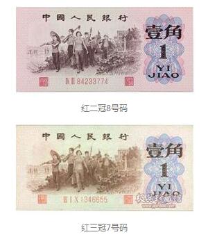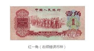 1、红一角:第三套人民币中的60版一角纸币“红一角”,券面图案中的人物自左向右前进,这在当时“左右路线”之争甚嚣尘上的年代,犯了严重的“右倾”错误。此后,该券即遭到严苛的回收销毁,存世量骤减。而这个钱币上的“路线错误”却使“红一角”在今天成为收藏界的宠儿,集万千目光与一身。