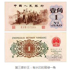 背绿一角与枣红一角其实有一段渊源,上面刚刚讲到正面的人物走“错路”了,往右边的小路上走了,这是严重的右倾错误,广大人民群众不乐意了,于是发行了背绿一角代替,背绿一角的人物走上了正确方向的道路上。由于背绿一角与两角长得很像,被不法分子利用,导致流通市场混乱不堪。这样也导致背绿一角成了发行时间最短的稀有品种,因而也成就了第三套人民币钞王的地位。