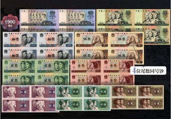 三。发行量稀小:物以稀为贵是收藏市场不变的真理。角券、1元、2元、5元、10元券四连体的发行量仅为40万套,80版50元、80版100元、90版100元、90版50元四连体的发行量更是十分稀少,均为20万套。千禧年双龙钞发行量仅仅只有10万套。