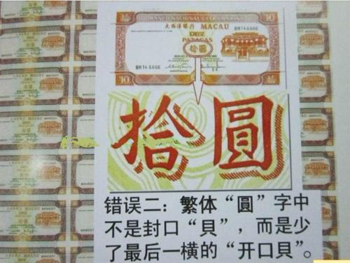 近来,据《澳门日报》、《广州日报》、《金融时报》、《钱币报》、《新浪网财经频道》等多家大型媒体报道,澳门整版钞惊现双错版,错版一是:中国银行发行的整版钞10元券背面主景图中国银行大厦上的中国银行的标准字写错了,中国银行四个字是由郭沫若所写的,本应为繁体字,而此处银字却写成了简体。错版二是:大西洋银行正面图案拾圆的圆,此处繁体圆字中不是封口贝,而是少了最后一横的开口贝。报道一出,立刻吸引了多方关注。双错版使得本来已经是最有升值潜力的品种更加潜力无限,它又成了全世界第一套且目前是唯一的一套错版钞。加上前面提到的优点,澳门整版钞在相当长的时间内都会对整个连体钞板块产生巨大的推动作用。