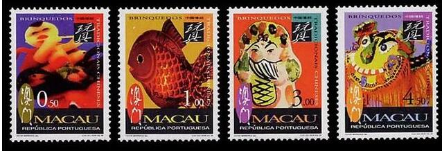 1996年澳门发行的这套玩具邮票更是被冠以了“中国传统”的前缀,看着是不是很亲切呢?